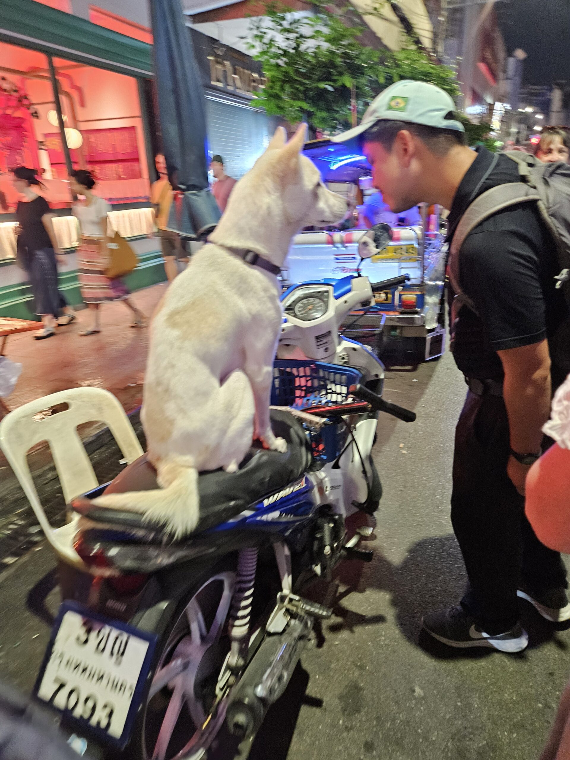 Zum Tagesabschluss wagten wir uns wieder hinein in Bangkoks berühmtes Verkehrsbiest. Ampeln scheinen hier mehr symbolischen Charakter zu haben – eher freundliche Vorschläge als verbindliche Regeln. Motorräder benutzen den Gehweg wie einen persönlichen VIP-Shortcut, schlängeln sich durch Busse hindurch oder fahren einfach mal kurz entgegen der Fahrtrichtung. Kurz gesagt: Wer den Verkehr in Bangkok übersteht, kann sich problemlos für die Formel 1 bewerben – oder zumindest für „Ninja Warrior“.