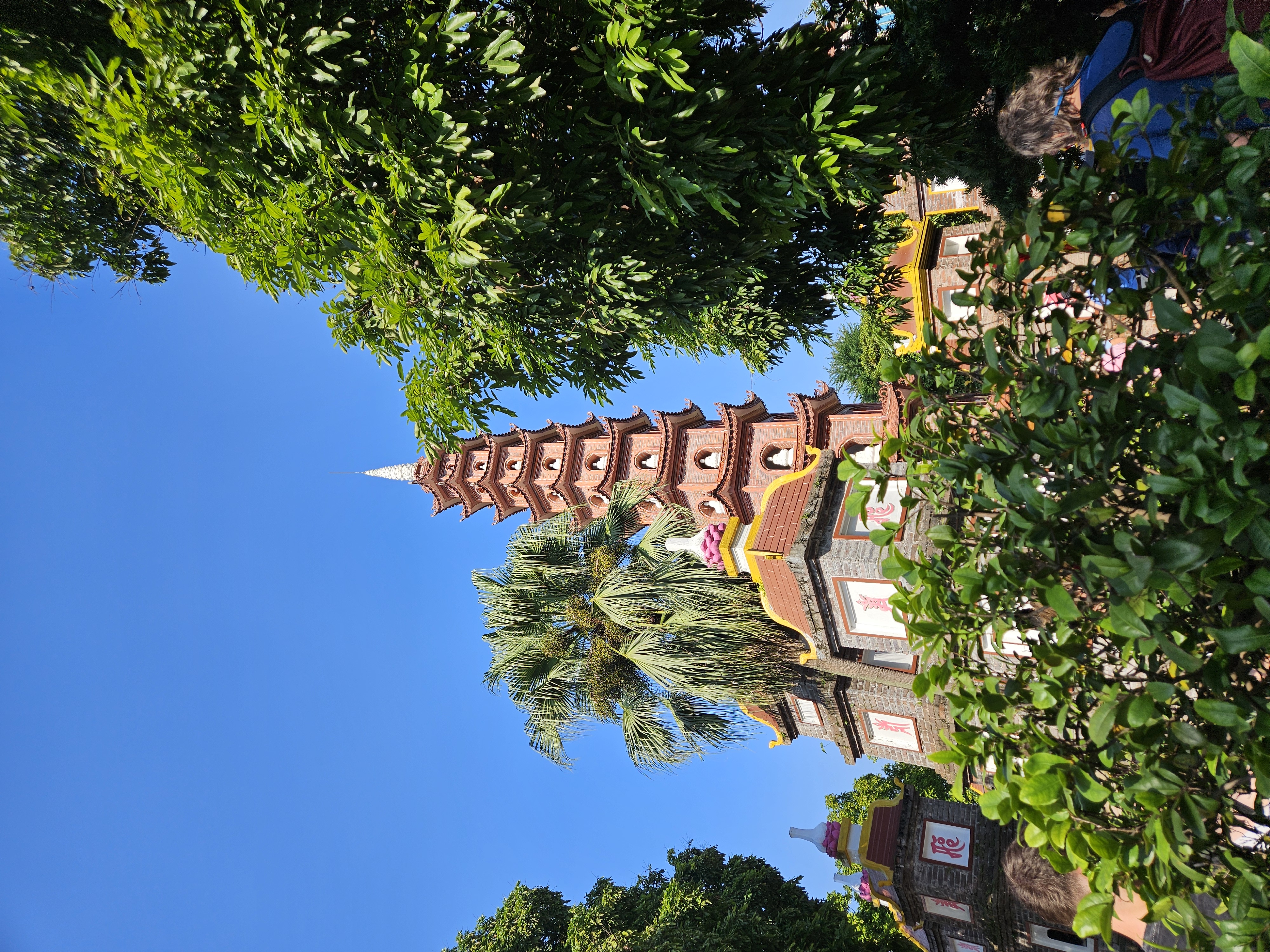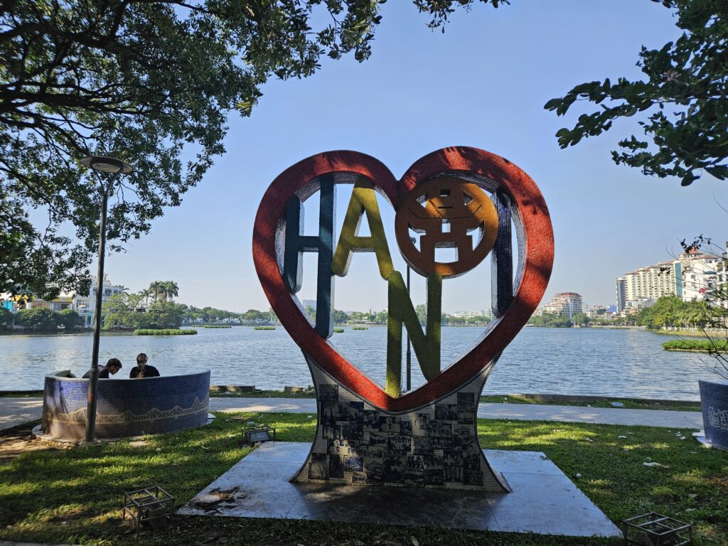 Danach haben wir einen langen Spaziergang zum Hồ-Tây-See gemacht, westlich vom Stadtzentrum. Dort steht die Trấn-Quốc-Pagode, ein kleiner, aber geschichtsträchtiger buddhistischer Tempel, der älteste buddhistische Tempel Hanois. Obwohl er nicht groß ist, herrscht dort Hochbetrieb. Touristen überall, Selfiesticks im Anschlag, das volle Programm. Im Vergleich zu den vielen wunderschönen Tempeln, die wir in Thailand und Kambodscha gesehen haben, wirkt dieser hier eher… nun ja… bescheiden. Sagen wir es freundlich: Er gibt sich Mühe, aber gegen Wat Pho und Angkor Wat anzutreten, ist ungefähr so, als würde ein Gartenzwerg versuchen, beim Architekturpreis mitzuspielen.Also: ein paar Fotos gemacht – Klick, Klick, Lächeln – und dann schnell weiter, bevor wir selbst Teil des Touristenschwarms wurden.