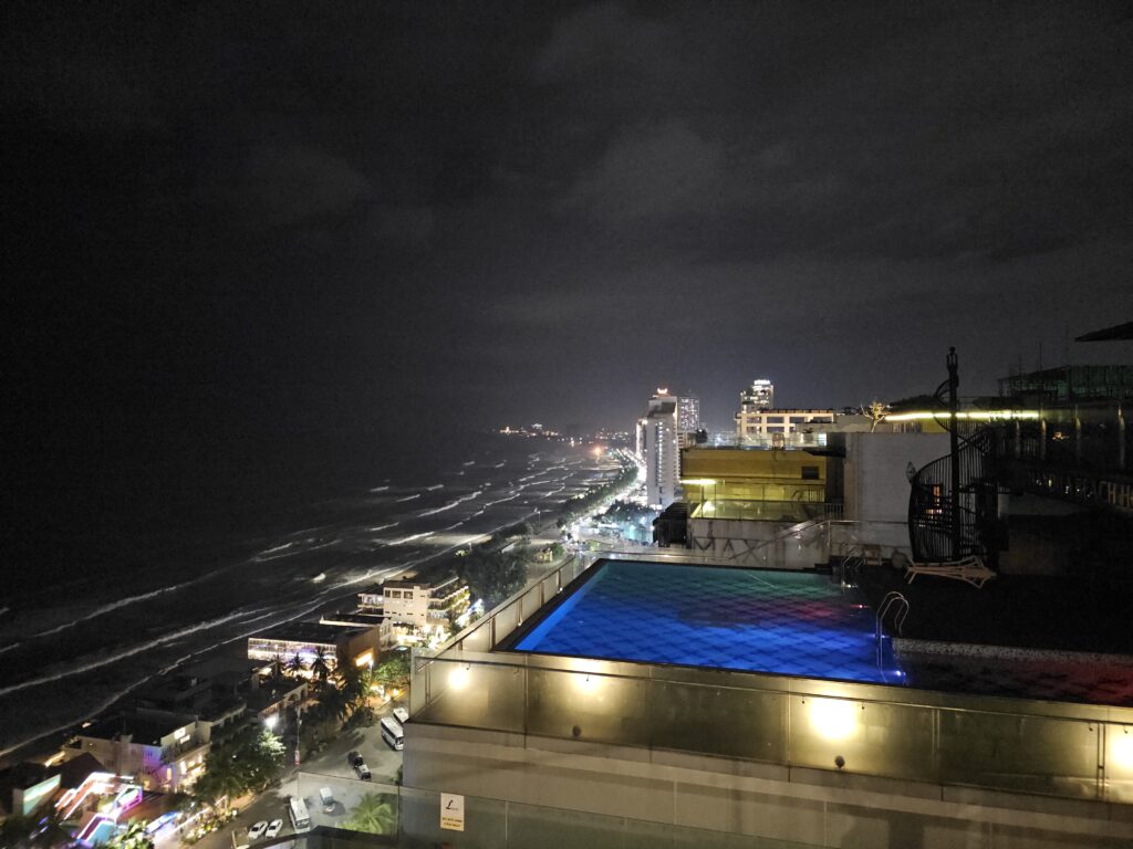 Auf unserer Weiterreise nach Da Nang hatten wir mal wieder ein Highlight – allerdings eher so die Art Highlight, die man keinem wünscht. VietJet Airlines ist ja ohnehin dafür bekannt, sich regelmäßig eine kreative Pause zu gönnen, aber diesmal haben sie wirklich alles gegeben. Erst wurden wir auf einen späteren Flug umgebucht (klar, warum auch nicht), und der hatte dann natürlich auch noch mal locker zwei Stunden Verspätung. Gegen Mitternacht – also zu einer Uhrzeit, zu der normale Menschen schon seit Stunden schlafen oder zumindest so tun – kamen wir dann mit insgesamt 9 Stunden Delay endlich im Hotel in Da Nang an. Immerhin: Das Hotel war das beste der Reise bisher und lag direkt am Strand, nur eine Straße entfernt. (Man gönnt sich ja sonst nichts.)