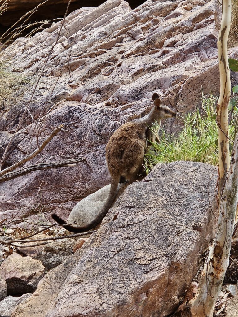 Da Hunde auf der Insel verboten sind, gilt die Population als besonders reinrassig. Leider füttern manche Touristen sie trotz Verbot – was dazu führt, dass Dingos Menschen mit Snacks verbinden. Wenn man einem Dingo begegnet, tief in die augen schauen und langsam entfernen. Nicht rennen, dass fördert den Jagdtrieb … und schon wird es ein Wettrennen 😉