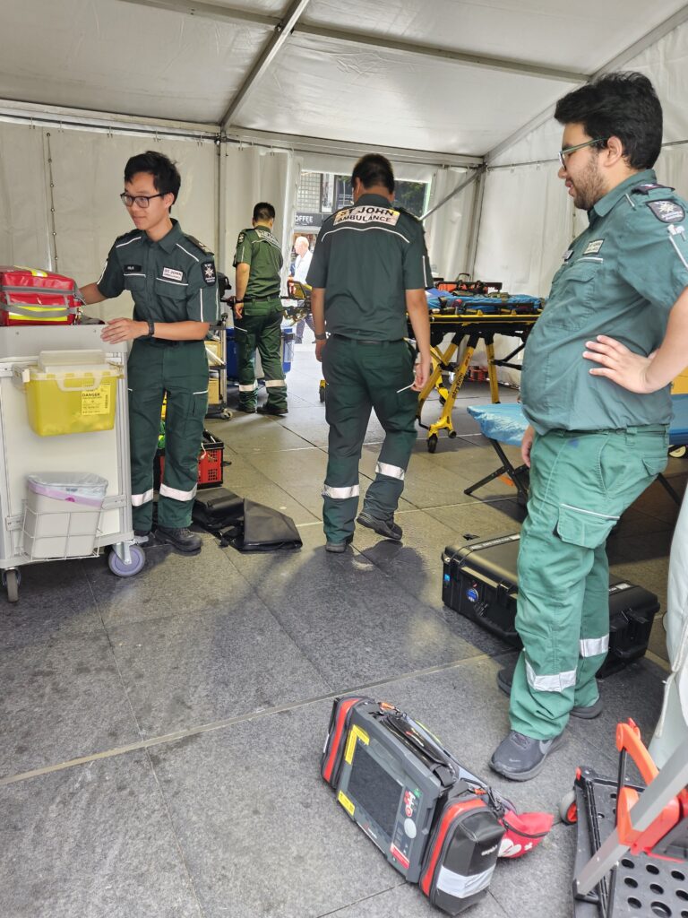 Man muss fairerweise sagen: Die Organisation war beeindruckend. Überall gab es Trinkwasserstellen, ausreichend Toiletten und Foodtrucks für das leibliche Wohl. Für den Notfall standen große Sanitätsbereiche bereit – in einem davon entdeckten wir sogar ein paar Defibrillatoren von Xin’s Firma. Schnell ein Beweisfoto gemacht, Stolz gespeichert, weiter im Programm.