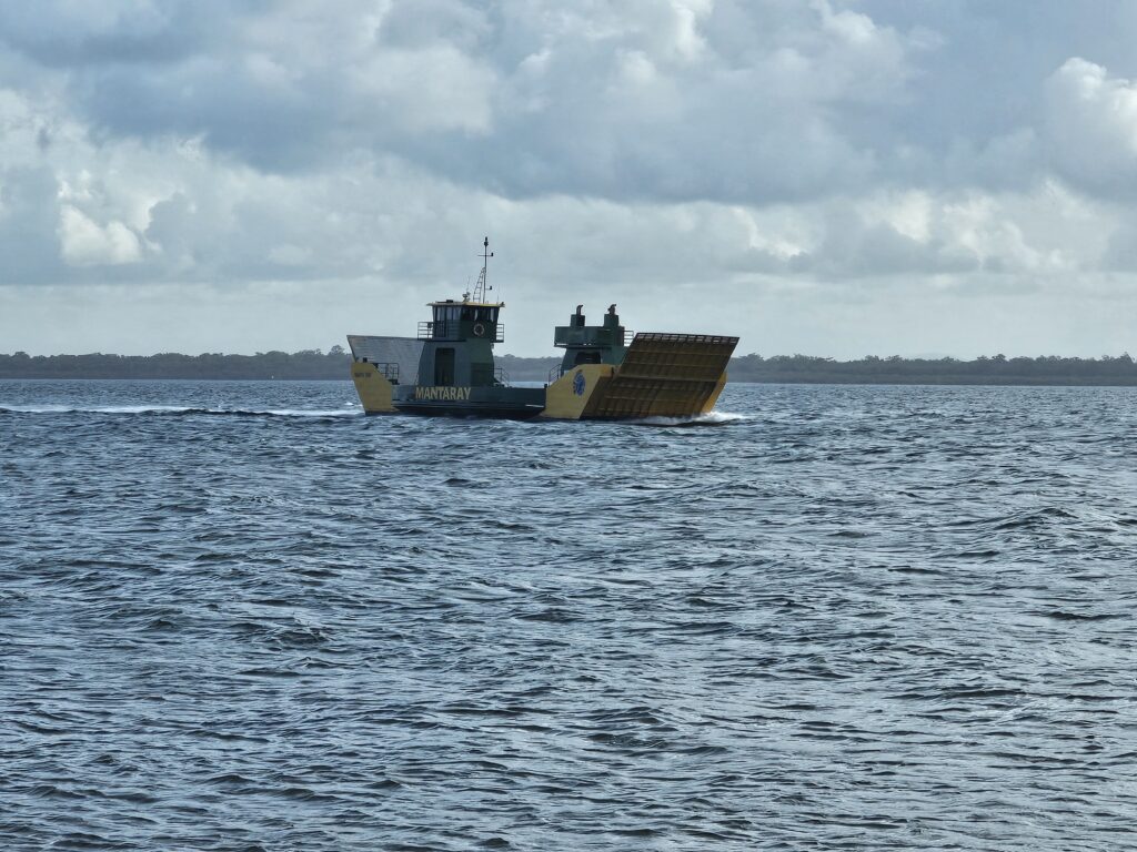 Mit der Manta Ray Barge ging es rüber – 10–15 Minuten später waren wir da. Und dann begann das, was ich nur als „Strand-Autobahn“ bezeichnen kann: