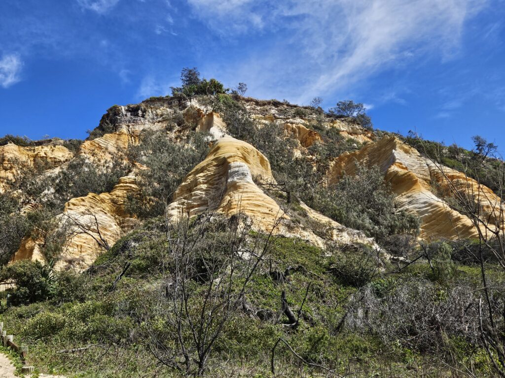 Auf dem Rückweg Richtung Resort ging es dann noch am Indians Head vorbei. Laut Legende der europäische Name, weil als Capt. James Cook 1770 hier landete die Ureinwohner auf dem Felsen standen und das Schiff argwöhnisch bestaunten. Die haben die Engländer bestimmt für Aliens gehalten 😉 Übrigend fast die eingzige Stelle wo man nicht direkt am Strand langfahren kann. Der Indians Head rangt einige Meter ins Meer, so dass man durch den Wald drumherum fahren muss.