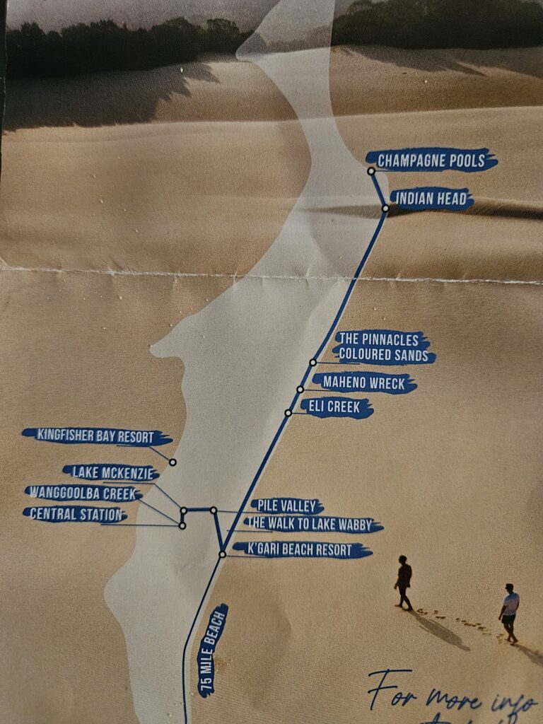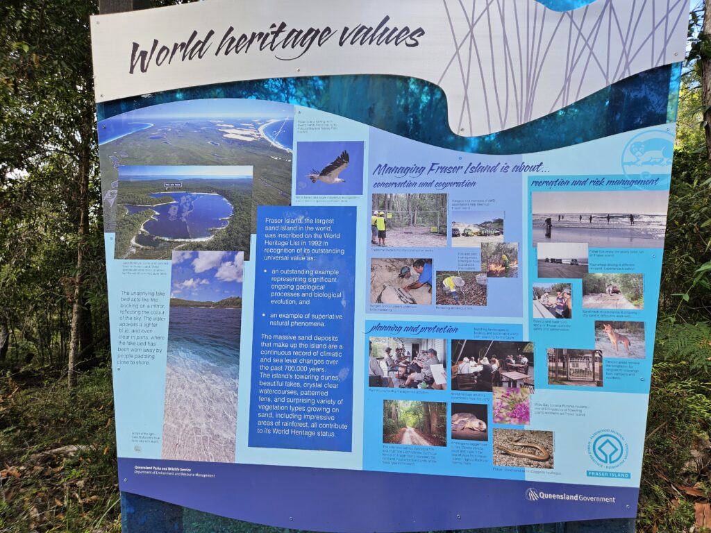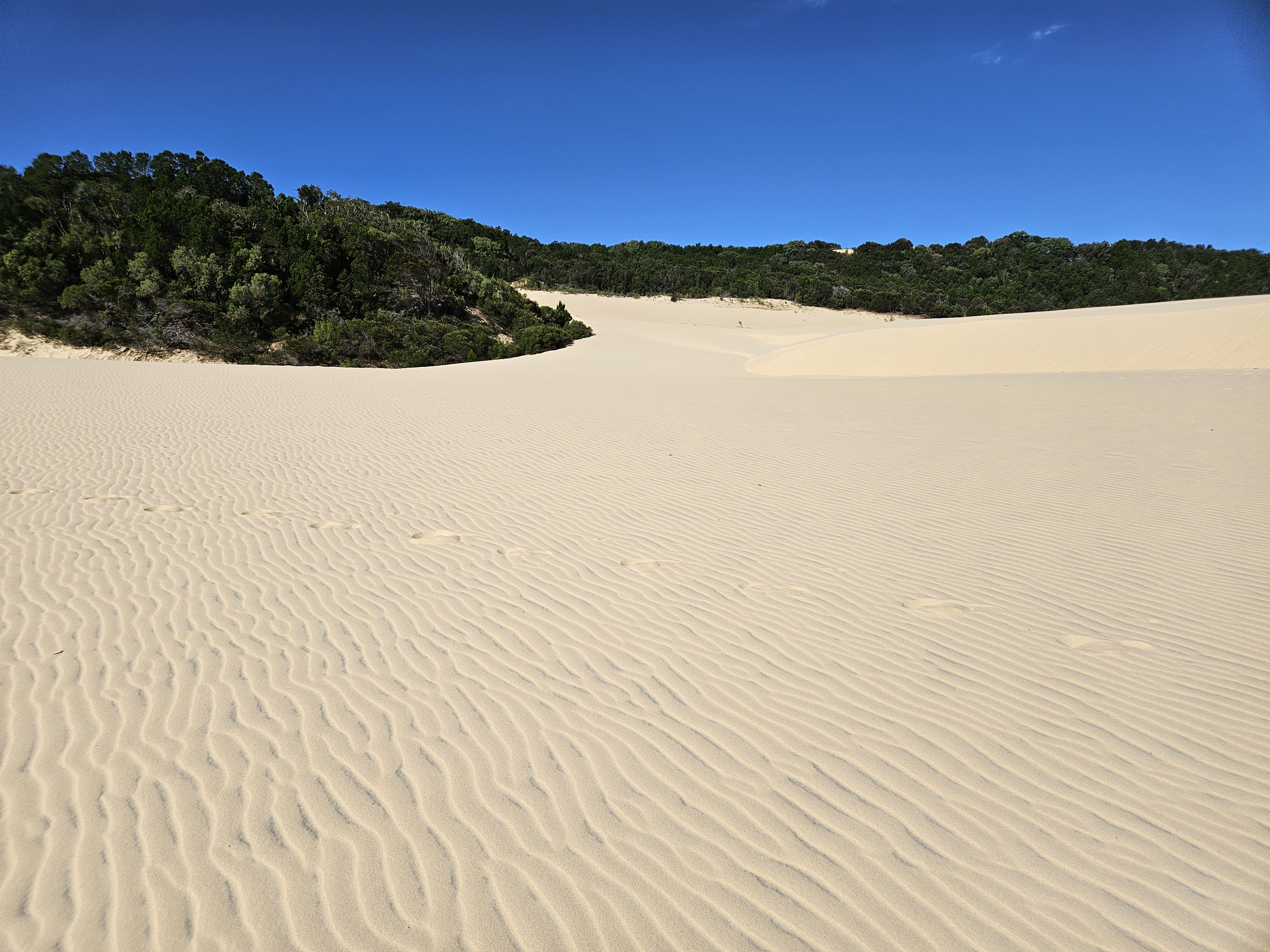 Die letzten zwei Tage haben wir eine Tour auf K’gari (formerly known as Fraser Island) gemacht – der größten Sandinsel der Welt. 124 km lang, 22 km breit und gefühlt 3 Millionen Sandkörner pro Quadratmeter. Benannt ist die Insel nach den Butchulla People – „K’gari“ bedeutet passenderweise „Paradies“.