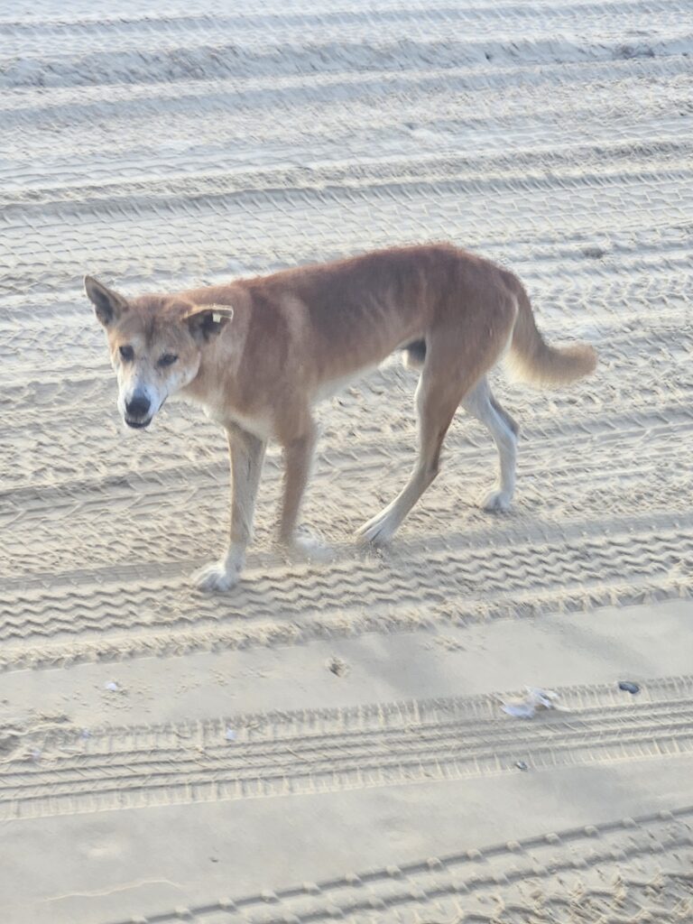 Da Hunde auf der Insel verboten sind, gilt die Population als besonders reinrassig. Leider füttern manche Touristen sie trotz Verbot – was dazu führt, dass Dingos Menschen mit Snacks verbinden. Wenn man einem Dingo begegnet, tief in die augen schauen und langsam entfernen. Nicht rennen, dass fördert den Jagdtrieb … und schon wird es ein Wettrennen 😉