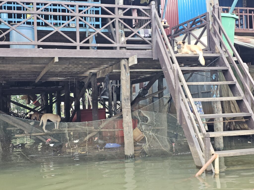 Wir sahen Häuser auf hohen Stelzen, Kinder, die auf alten Holzbooten spielten, die bis oben mit Fischernetzen vollgestopft waren. Ein schwimmender Hühnerstall schaukelte gemütlich vor sich hin. Auf den Wasserveranden lagen Katzen und Hunde herum, als hätten sie Airbnb auf dem See erfunden. Einige Teenager steuerten schon stolz ihre Longtail-Boote mit dröhnendem Motor am Heck, als seien sie die Formel-1-Stars des Wasserdorfs.