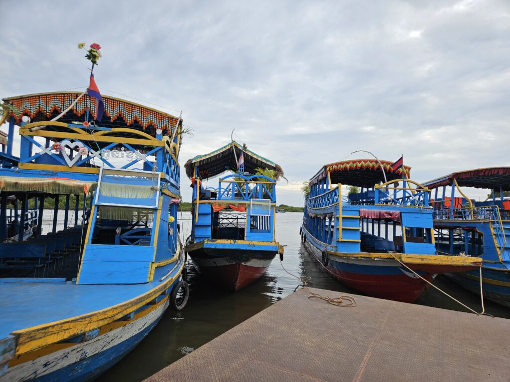 Gestern haben wir eine Sunset-Bootstour auf dem Tonle-Sap-See gebucht – einem der größten und fischreichsten Süßwasserseen in ganz Südostasien. Pünktlich um 14:15 wurden wir vom Hotel abgeholt. Nur etwa 30 km entfernt liegt das Wasserdorf Kampong Phlouk, südöstlich von Siem Reap. Ein halbes Jahr steht dieses Dorf komplett im Wasser, erreichbar nur per Boot. Die Bewohner leben vom Fischfang. In der Trockenzeit – von November bis April – verwandeln sich die Flächen in Reisfelder, und man kann sogar mit dem Auto hinfahren.