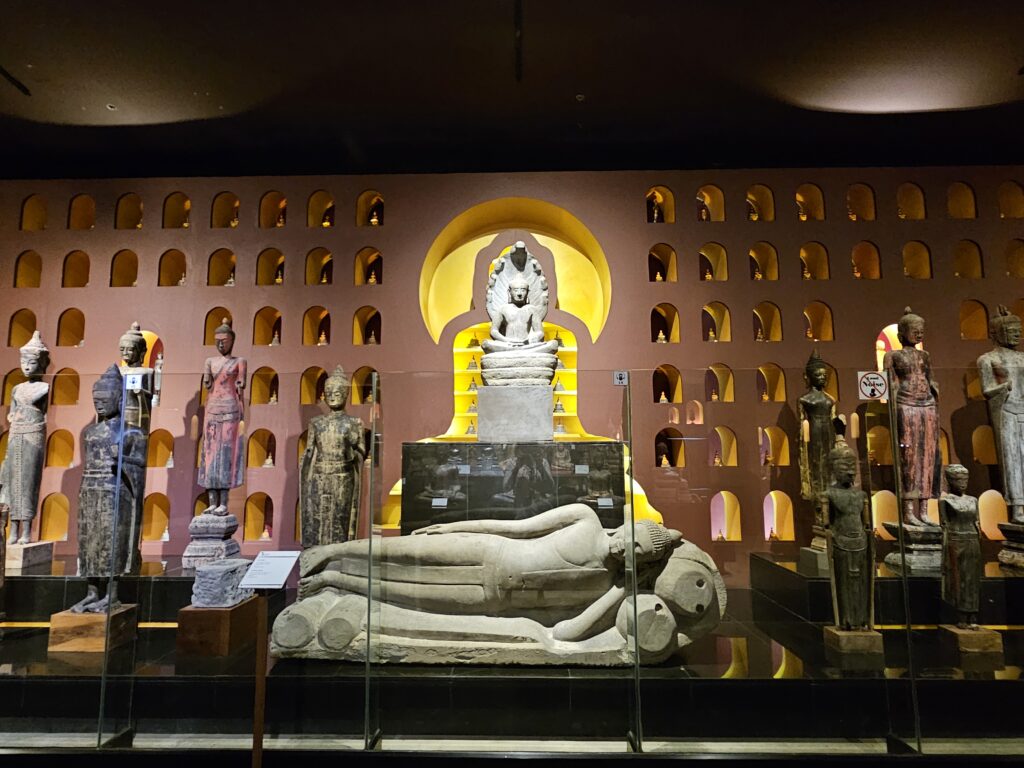 Heute beschlossen wir, das Angkor Wat National Museum zu besuchen. Der Eintritt kostet 12 $ pro Person. Wir fanden das Museum sehr informativ und modern eingerichtet. Es wird die Geschichte der Tempel und Figuren von der Post-Angkor-Zeit ab dem 8. Jahrhundert bis zur Pre-Angkor-Zeit Mitte des 19. Jahrhunderts gezeigt. Viele Hallen mit kurzen Videos in verschiedenen Sprachen. Eigentlich sollte man zuerst hierher kommen und dann die Tempel besuchen – wir haben’s halt andersherum gemacht. Auch ok. Besonders gut hat uns die Halle der „Tausend Buddhas“ gefallen: Jeder Buddha hat seine eigene Pose und eine fast mystische Beleuchtung. Ein wirklich schöner Anblick.